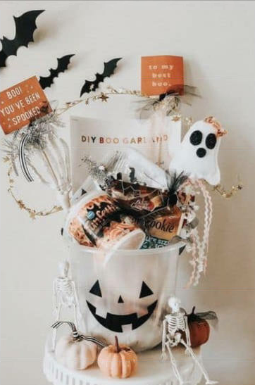 Instead of focusing only on candy, surprise your little ones (or neighbors!) with a “Boo Basket.” Fill it with small gifts like stickers, coloring pages, mini pumpkins, or a favorite healthy snack. It’s a simple way to spread kindness and Halloween cheer.